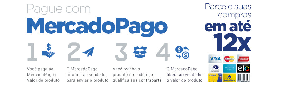 Hoje em dia decidimos utilizar o Mercado Pago como a nossa plataforma de pagamentos porque é uma plataforma extremamente segura , onde o cliente pode pagar via Cartão de credito em até 12x ou Boleto Bancário.