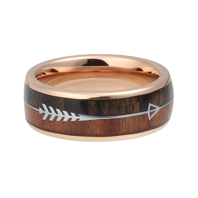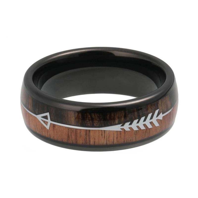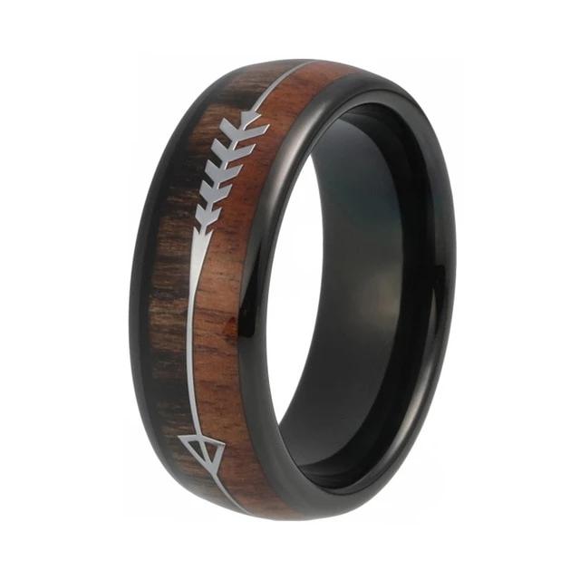 Anel de Tungstênio com detalhes em Madeira - Noivado, Casamento, Compromisso